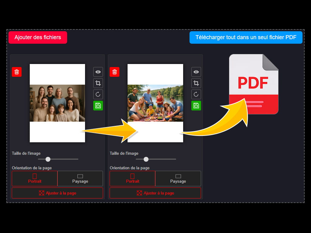 Vous pouvez télécharger plusieurs images à la fois, faire pivoter chaque image individuellement avant la conversion et télécharger tous les fichiers convertis en une seule étape.